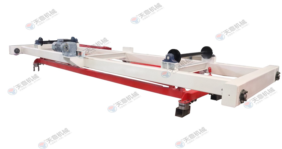 翻轉吊機:抓取模箱翻轉90°,側立在切割小車上進行切割;切割工段空翻脫模機將模框翻轉90°,放在切割小車支座上進行脫模,脫模后的模框與清理后的側模板進行合模,合膜后的空模框被吊運至模具回程軌道上進行涂油處...