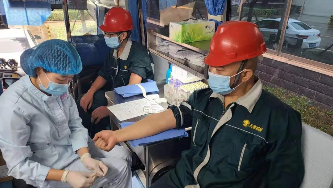 當獻血車駛入天意機械廠區,等候在活動現場的員工相繼伸出手臂挽袖獻血,用愛心傳播正能量。許多參與獻血的員工是第一次獻血,當他們想到自己的血液能夠幫助到有需要的人,臉上紛紛露出燦爛的笑容。
