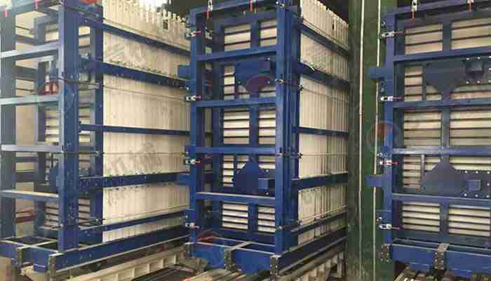 該復(fù)合墻板生產(chǎn)線立式旋轉(zhuǎn)臥式出板復(fù)合墻板成型機(jī),一次可生產(chǎn)四十塊墻板,該生產(chǎn)線主要分為:配料攪拌系統(tǒng)、墻板成型系統(tǒng)、液壓整體開(kāi)模系統(tǒng)、液壓翻轉(zhuǎn)系統(tǒng)、整體出板翻轉(zhuǎn)碼垛系統(tǒng)、成型機(jī)自動(dòng)循環(huán)系統(tǒng)、變頻擺渡系統(tǒng)、數(shù)控配電系統(tǒng)等部件 組成。該生產(chǎn)線自動(dòng)化程度高,液壓開(kāi)合模,解決了傳統(tǒng)立式復(fù)合墻板機(jī)人工開(kāi)合安全隱患,提高了工作效率。設(shè)備配有整體出板碼垛系統(tǒng),解決了傳統(tǒng)人工出板方式,減少產(chǎn)品的破損率,提高了產(chǎn)能。生產(chǎn)線使用密封式泵送系統(tǒng)配備雙工位注漿槍,注漿速度快密實(shí)度高,材料粘結(jié)更緊密。